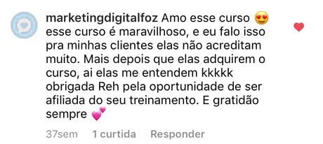 Se dentro desse período, você sentir que não é para você, é só pedir o reembolso, que devolvemos 100% do valor. investido.